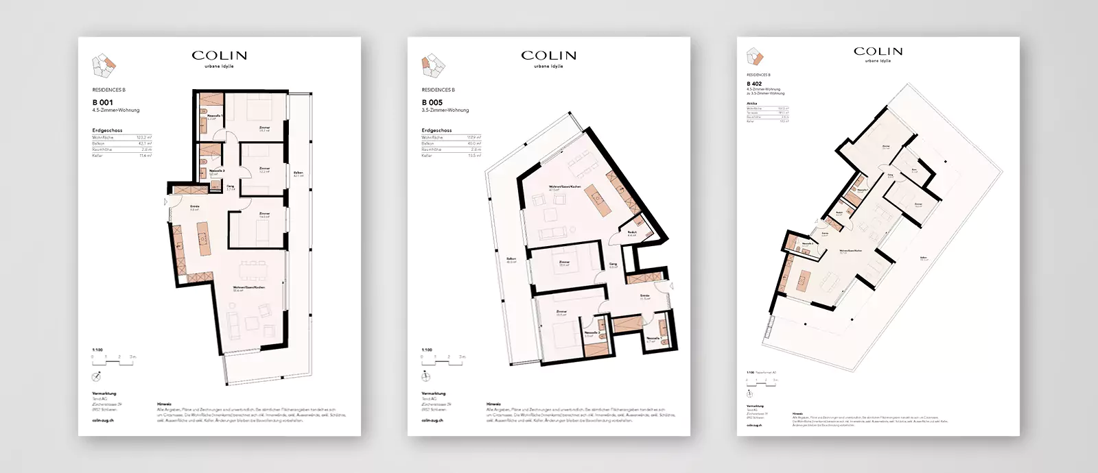 Das Projekt setzt sich zusammen aus 6 Doppeleinfamilienhäusern und 2 Gebäuden im Stockwerkeigentum. Während den Käufern der Doppeleinfamilienhäuser ein Budget zur freien Wahl ihres Interieurs zur Verfügung stand, wurden eigens für die Stockwerkeigentümer drei hochwertige Interieurlinien entwickelt, die unterschiedlichste Wohnwelten abbildeten.