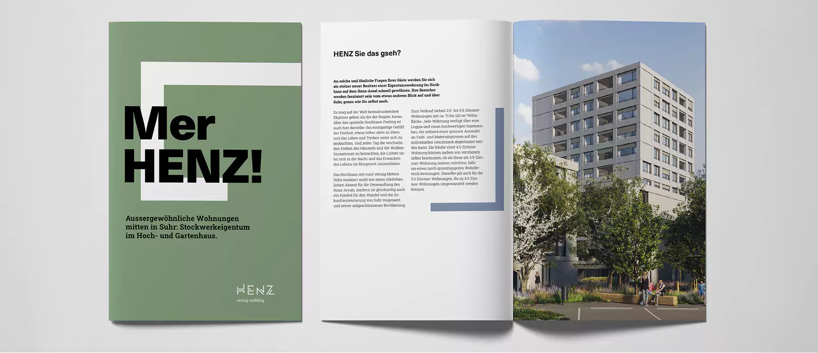 Das Projekt «Henz» ist eine Überbauung auf dem ehemaligen Areal des Stahlhändlers Henz AG in Suhr. Das Angebot umfasst sowohl Eigentumswohnungen als auch Mietwohnungen. Herzstück der Bebauung bildet dabei das höchste Gebäude von Suhr. Daneben entsteht viel öffentlicher Raum mit einem Quartierplatz, Geschäften, Ateliers und einem grossen Spielplatz.